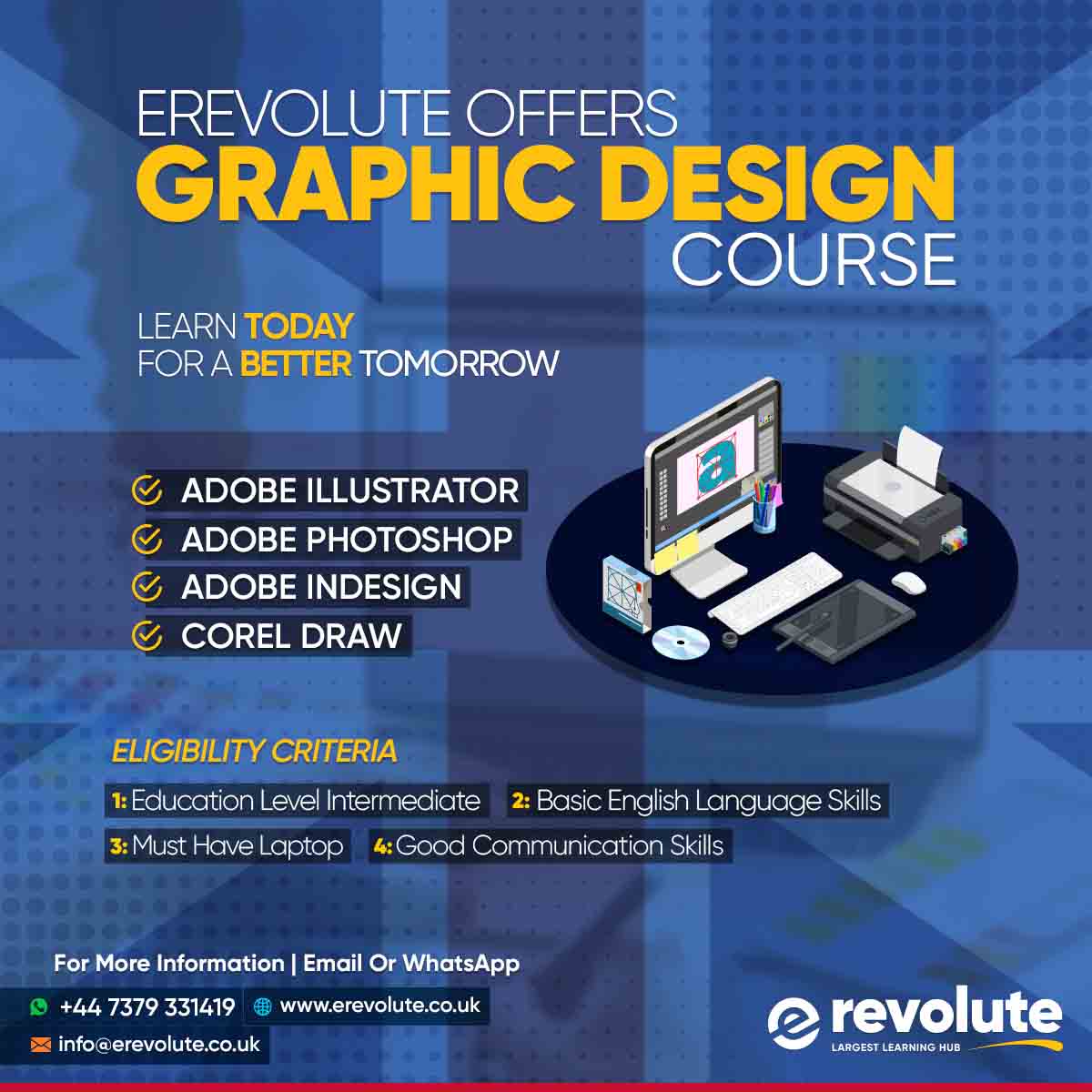 eRevolute as a graphic designing institute in Pakistan is one of the best. We are offering graphic design courses in Pakistan that is very effective. If you want to start a job or freelancing, then you must join us to learn graphic design. Our graphic design course is also very effective to start a business and advertise it. The main contents of our graphic design course are: